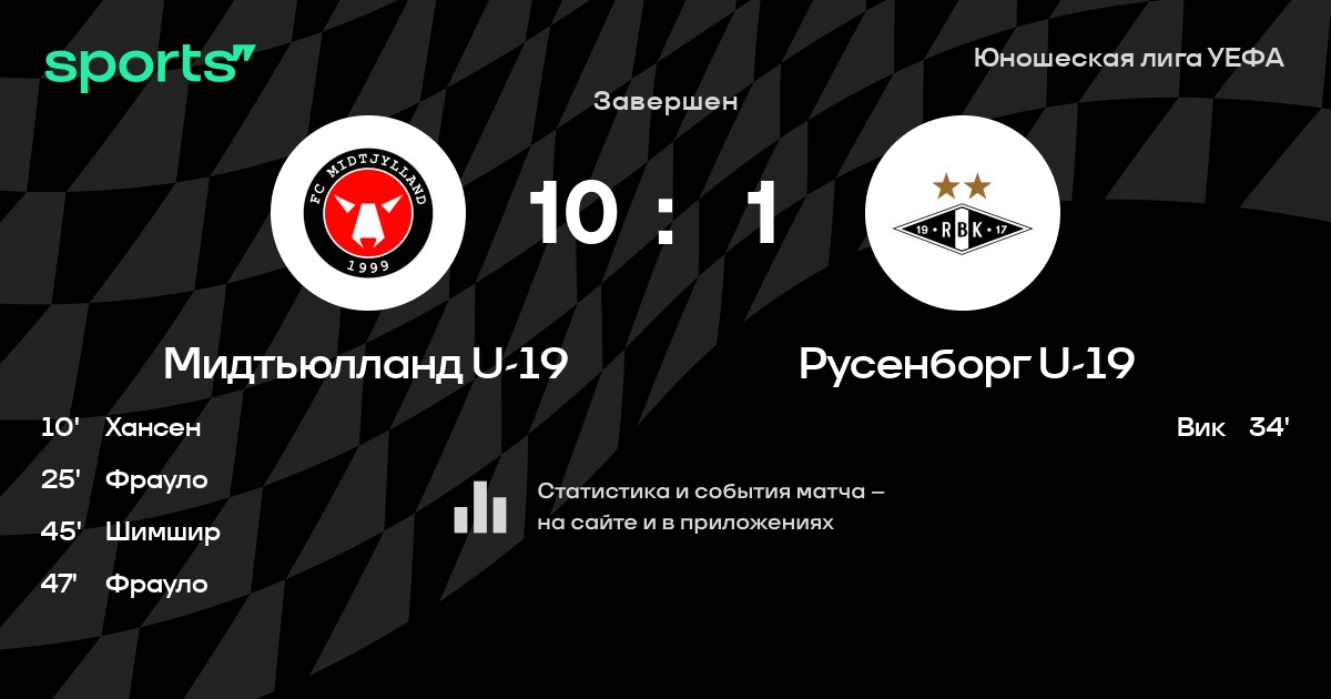 Мидтьюлланд U-19 – Русенборг U-19: коэффициенты