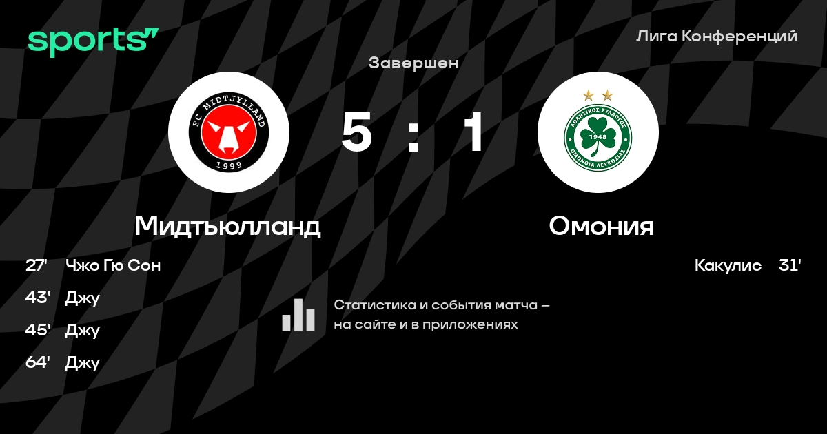 Результат прошлой игры в турнире «Лига Конференций»: Омония – Мидтьюлланд 1:0. В последних 5 играх Мидтьюлланд забивает 6 голов. В последних 5 играх Мидтьюлланд пропускает 8 голов.
