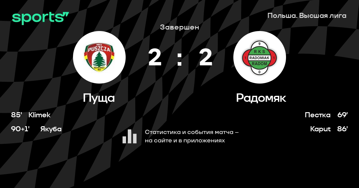 | 1 | Лех | 34 | 22 | 4 | 8 | 68 | 31 | +37 | 70 | ||