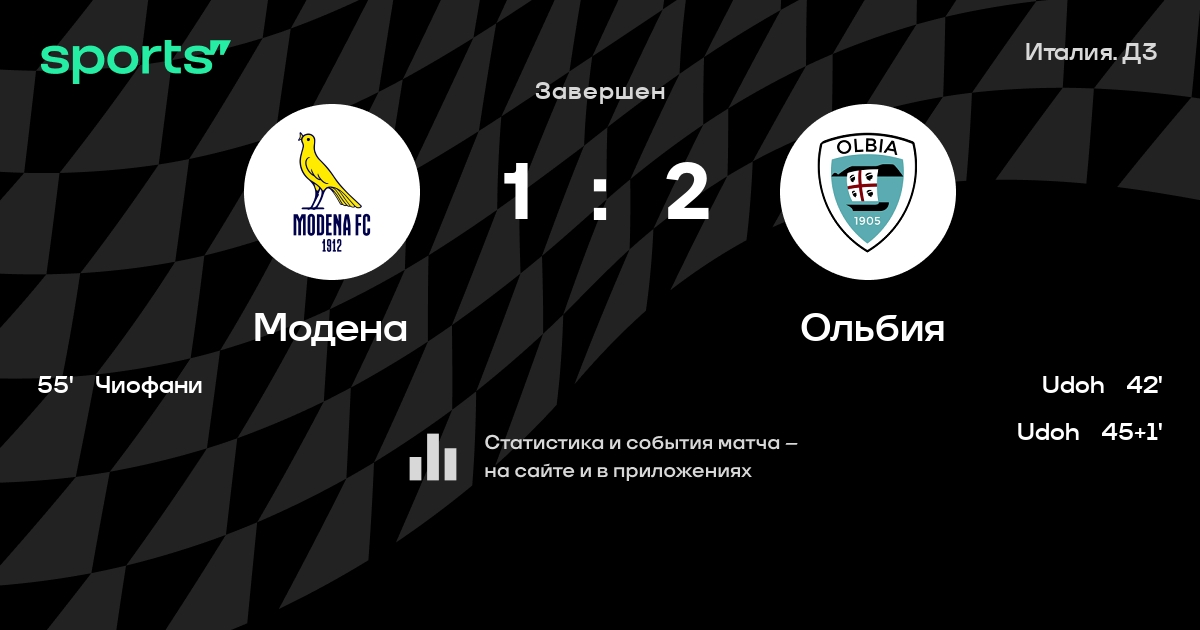 Результат прошлой игры в турнире «Италия. Д3»: Модена – Пескара 1:0. После 29 туров Модена набирает 71 очков и занимает 1 место в турнире. Лучший бомбардир команды – Фабио Скарселла: он забил 9 в 21 матчах. Модена побеждает в 4 последних матчах в рамках турнира «Италия. Д3». Модена имеет в активе больше всех побед в турнире – 22. В 4 последних матчах в турнире «Италия. Д3» Модена обязательно забивает. В последних 5 играх Модена забивает 6 голов. В последних 5 играх Модена пропускает 1 голов.