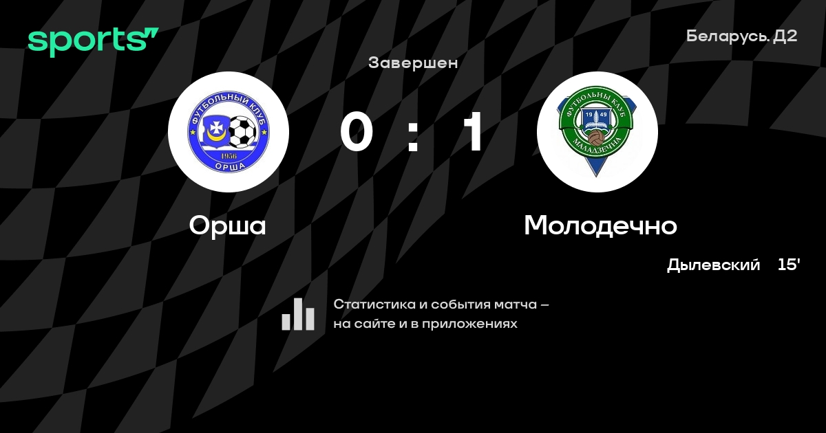 Результат прошлой игры в турнире «Первая лига»: Барановичи – Орша 0:2. После 22 туров Орша набирает 30 очков и занимает 10 место в турнире. Лучший бомбардир команды – Дмитрий Тамело: он забил 7 в 21 матчах. Молодечно имеет в активе больше всех побед в турнире – 16. В последних 5 играх Орша забивает 4 голов. В последних 5 играх Орша пропускает 5 голов.