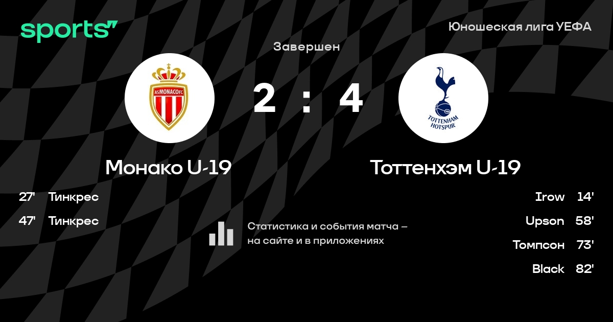 Монако U-19 – Тоттенхэм U-19: Тоттенхэм U-19 забивает в 3 последних матчах против этого соперника