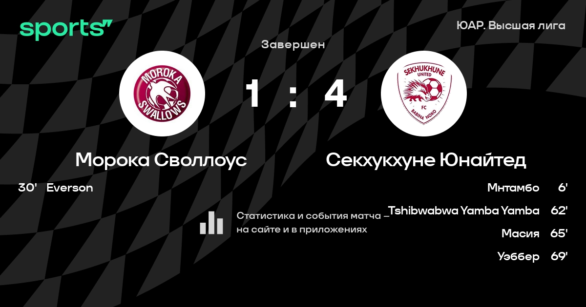 Трансляция Морока Своллоус - Секхукхуне Юнайтед
