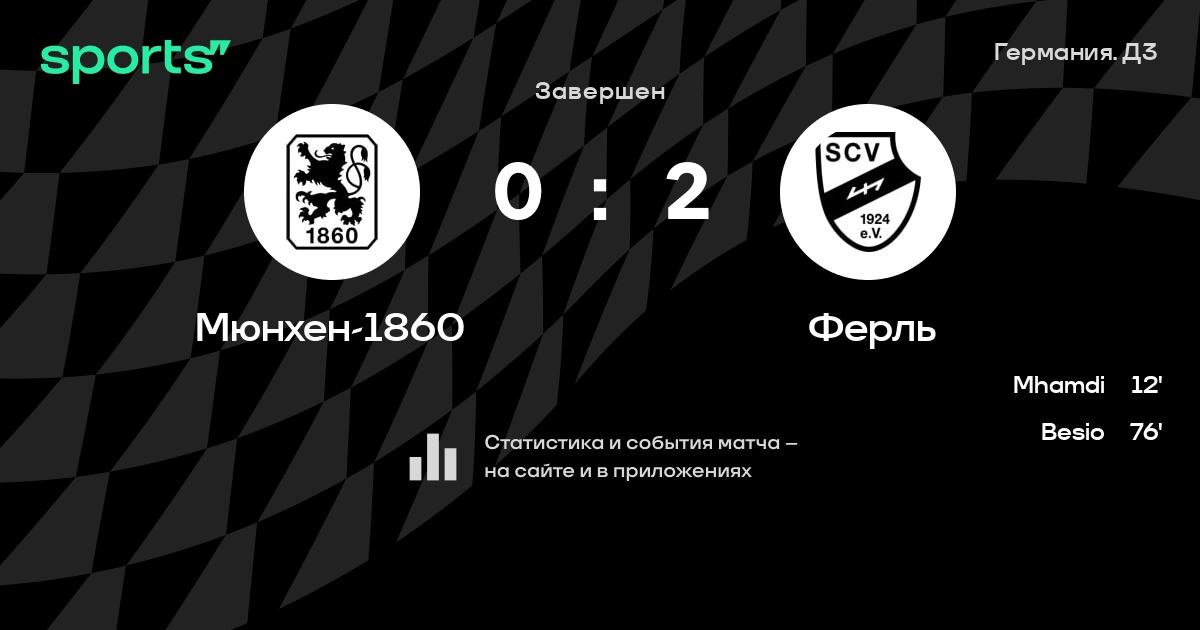 Результат прошлой игры в турнире «Третья лига»: Ингольштадт – Мюнхен-1860 1:2. После 18 туров Мюнхен-1860 набирает 30 очков и занимает 7 место в турнире. Лучший бомбардир команды – Сигурд Хеуген: он забил 7 в 18 матчах. Мюнхен-1860 побеждает в 4 последних матчах в рамках турнира «Третья лига». В 4 последних матчах в турнире «Третья лига» Мюнхен-1860 обязательно забивает. В последних 5 играх Мюнхен-1860 забивает 8 голов. В последних 5 играх Мюнхен-1860 пропускает 6 голов.