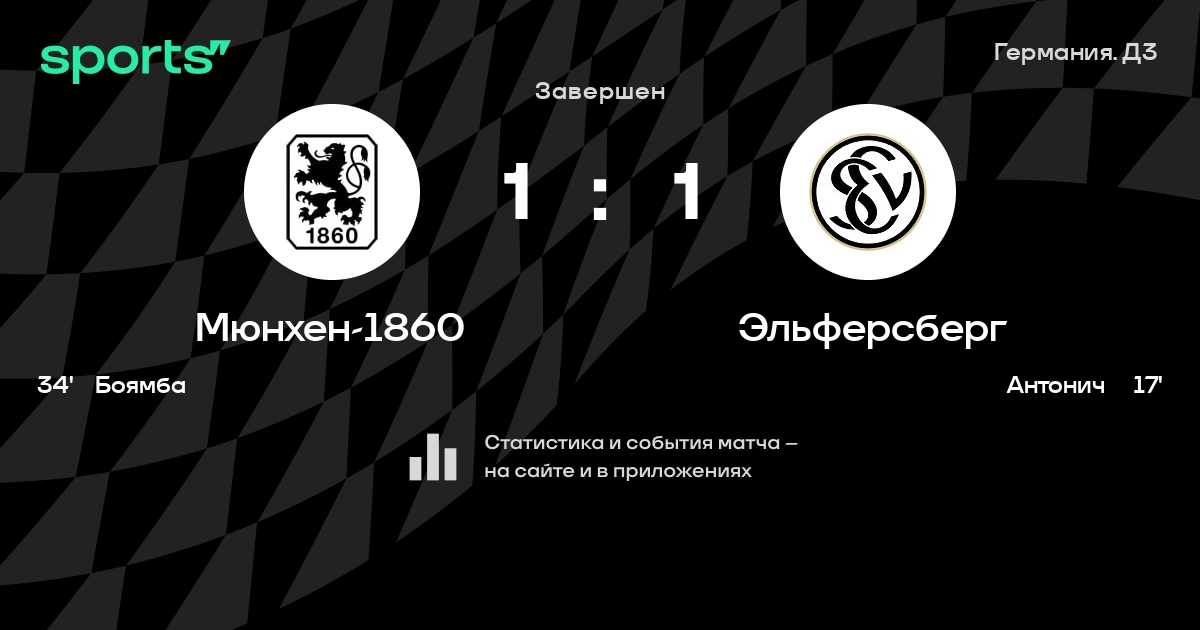 Результат прошлой игры в турнире «Третья лига»: Дуйсбург – Мюнхен-1860 2:2. После 26 туров Мюнхен-1860 набирает 36 очков и занимает 8 место в турнире. Мюнхен-1860 не может выиграть в 7 последних матчах в рамках турнира «Третья лига». Эльферсберг имеет в активе больше всех побед в турнире – 18. В последних 5 играх Мюнхен-1860 забивает 3 голов. В последних 5 играх Мюнхен-1860 пропускает 8 голов.