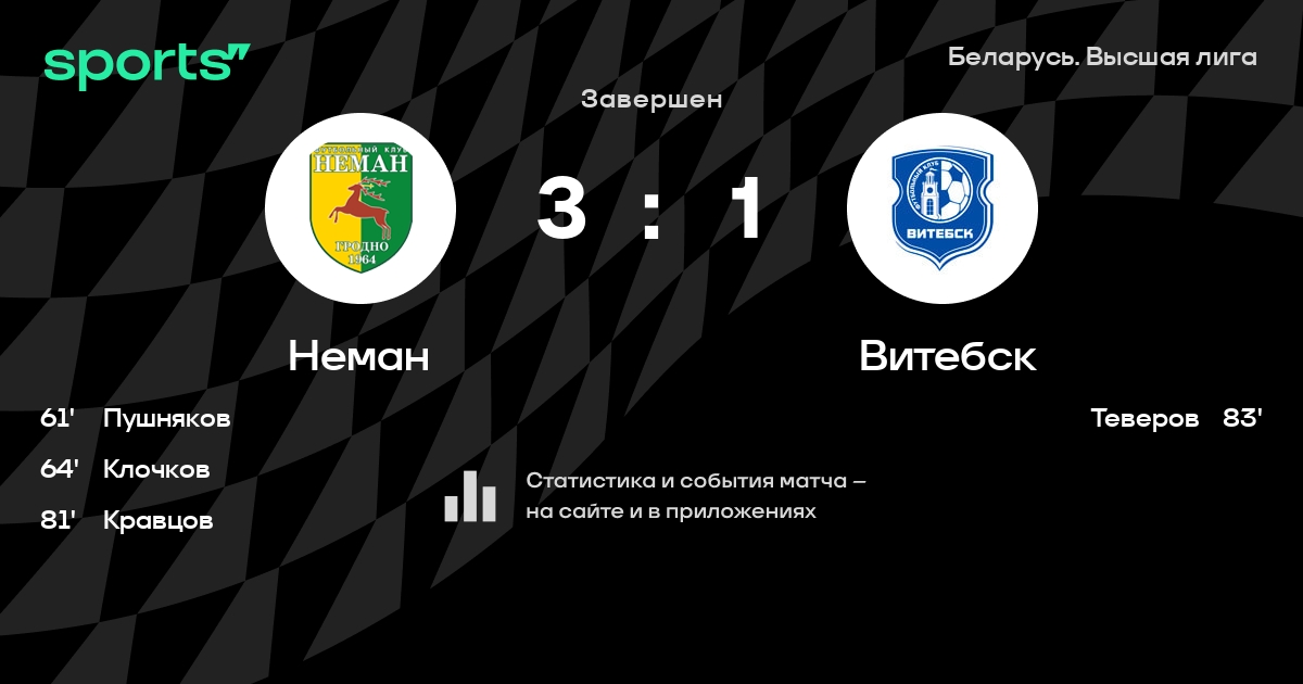 Неман – Витебск: Неман не проигрывает в 7 из 9 последних матчей против этого соперника дома