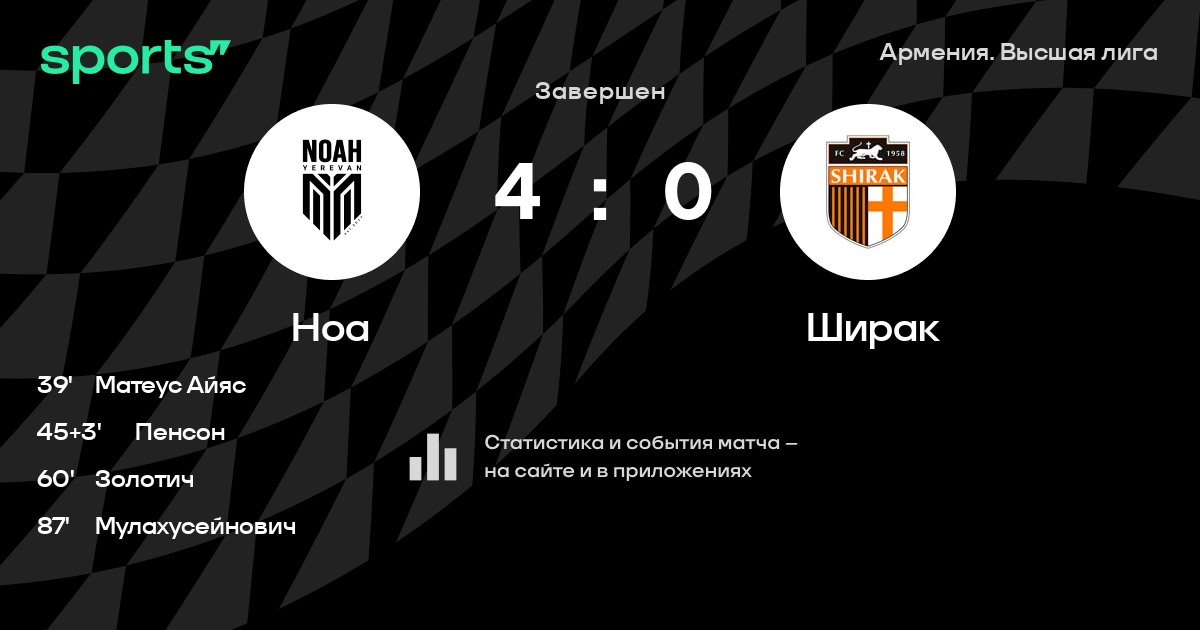 Ноа – Ширак: Ноа забивает в 3 последних матчах против этого соперника