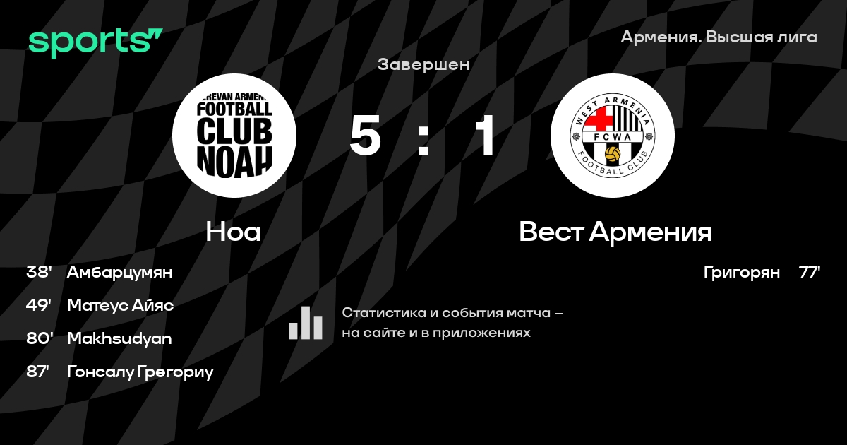 Ноа – Вест Армения: Ноа забивает в 6 последних матчах против этого соперника