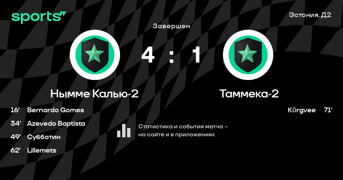 Результат прошлой игры в турнире «Первая лига»: Велко Тарту – Нымме Калью-2 5:2. После 33 туров Нымме Калью-2 набирает 39 очков и занимает 6 место в турнире. Лучший бомбардир команды – Tiago Baptista: он забил 18 в 20 матчах. В последних 5 играх Нымме Калью-2 забивает 4 голов. В последних 5 играх Нымме Калью-2 пропускает 11 голов.