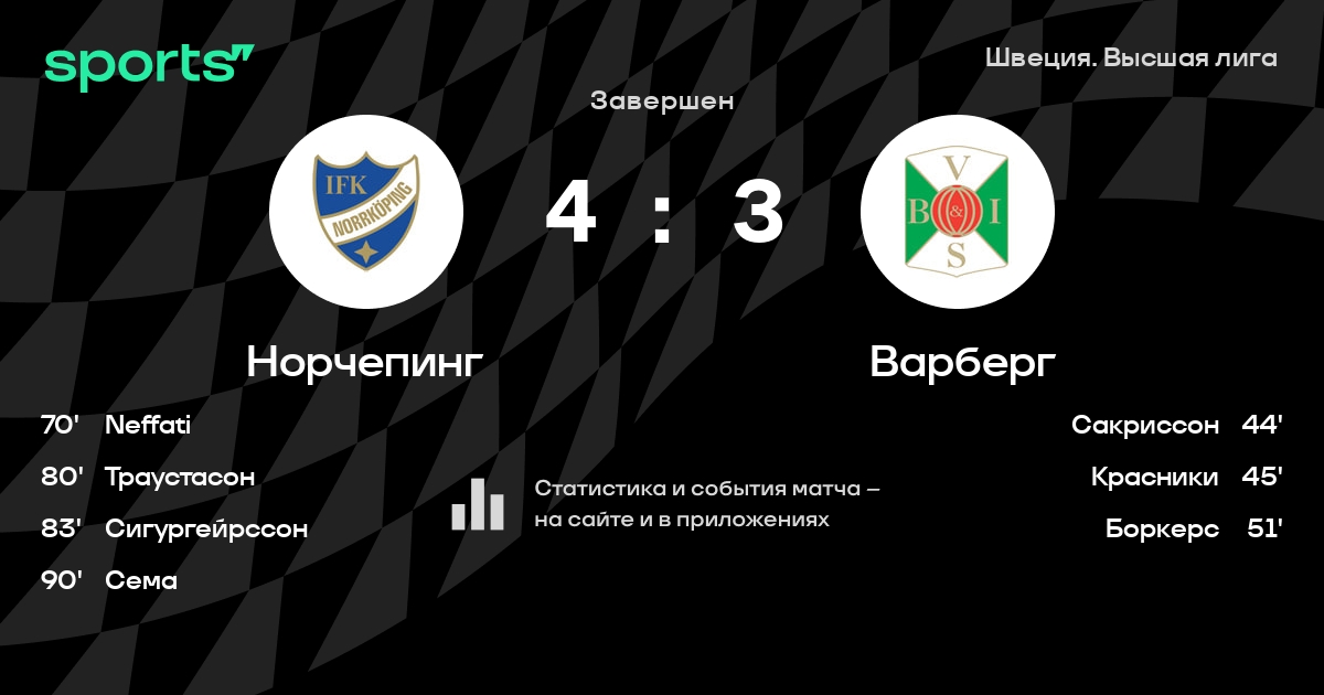 Норчепинг – Варберг: Варберг забивает в 7 последних матчах против этого соперника