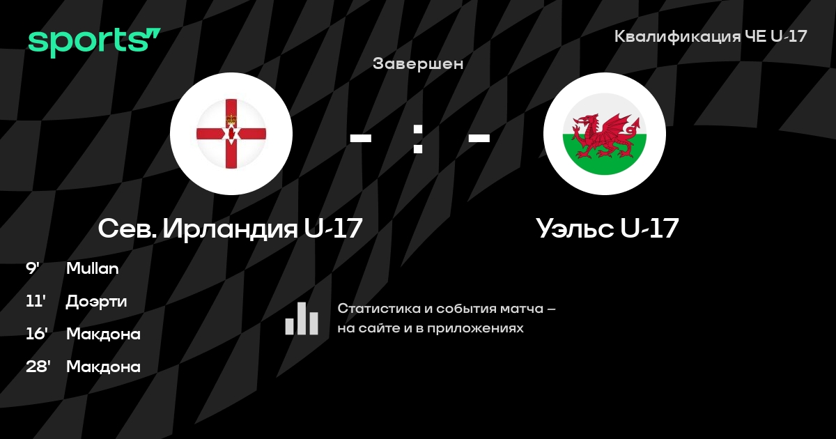 Трансляция Сев. Ирландия U-17 - Уэльс U-17