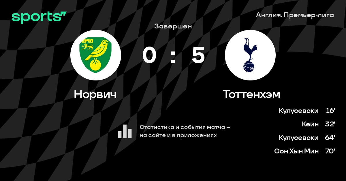 Норвич – Тоттенхэм: Тоттенхэм забивает в 6 последних матчах против этого соперника
