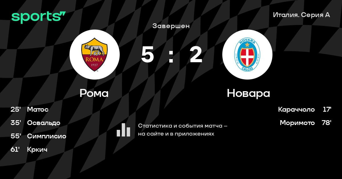 Стекеленбург - Кьер, Хосе Анхель - Матос, Симплисио, де Росси, Таддеи, Гаго - Тотти, Освальдо, КркичЗапасные: Курчи, Сисиньо, Рози, Пишителла, Ламела, Вивиани, Перротта