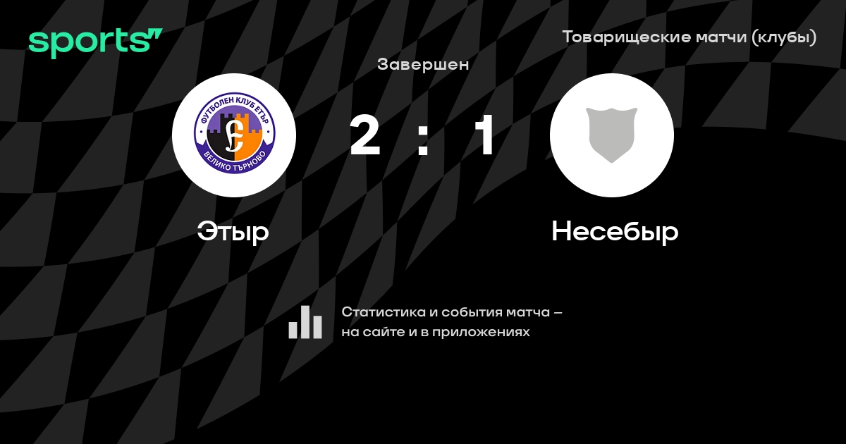 Результат прошлой игры в турнире «Товарищеские матчи (клубы)»: Этыр – Spartak Pleven 0:0. Этыр не проигрывает в 3 последних матчах в рамках турнира «Товарищеские матчи (клубы)». В последних 5 играх Этыр забивает 4 голов. В последних 5 играх Этыр пропускает 3 голов.