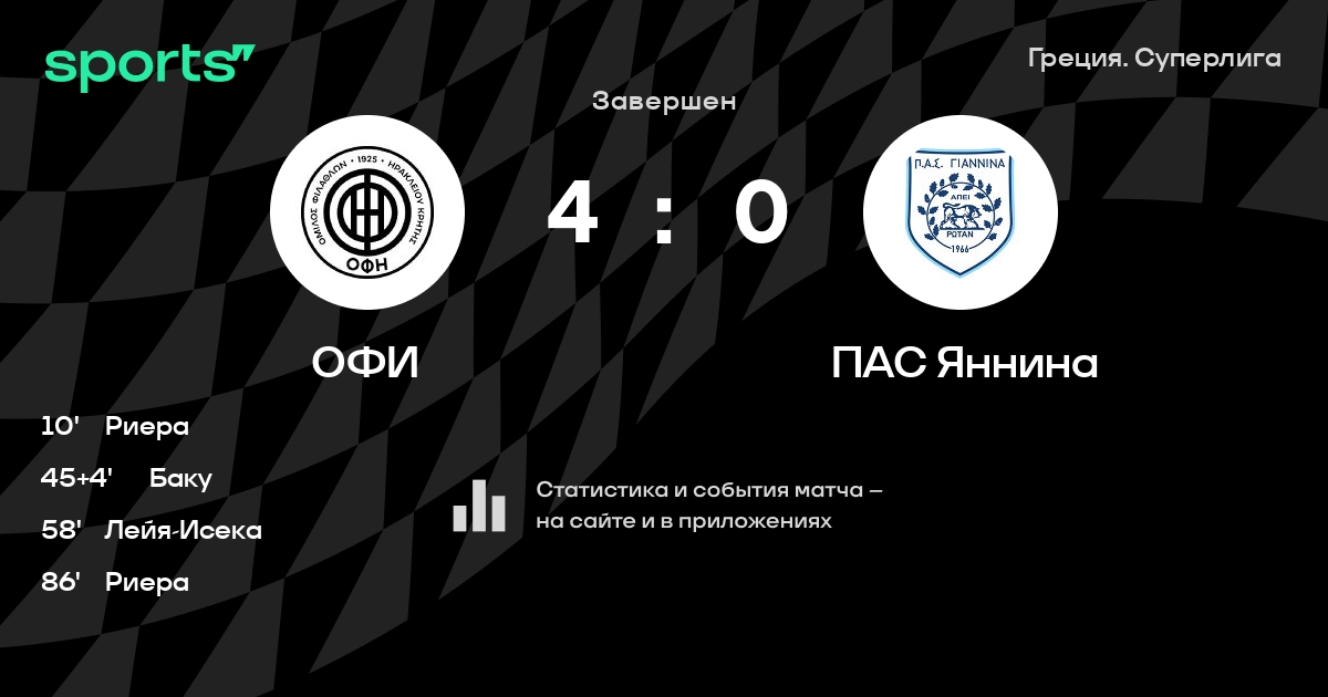 ОФИ – ПАС Яннина: ПАС Яннина не проигрывает в 6 из 8 последних матчей против этого соперника