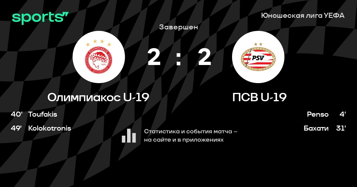 Трансляция Олимпиакос U-19 - ПСВ U-19