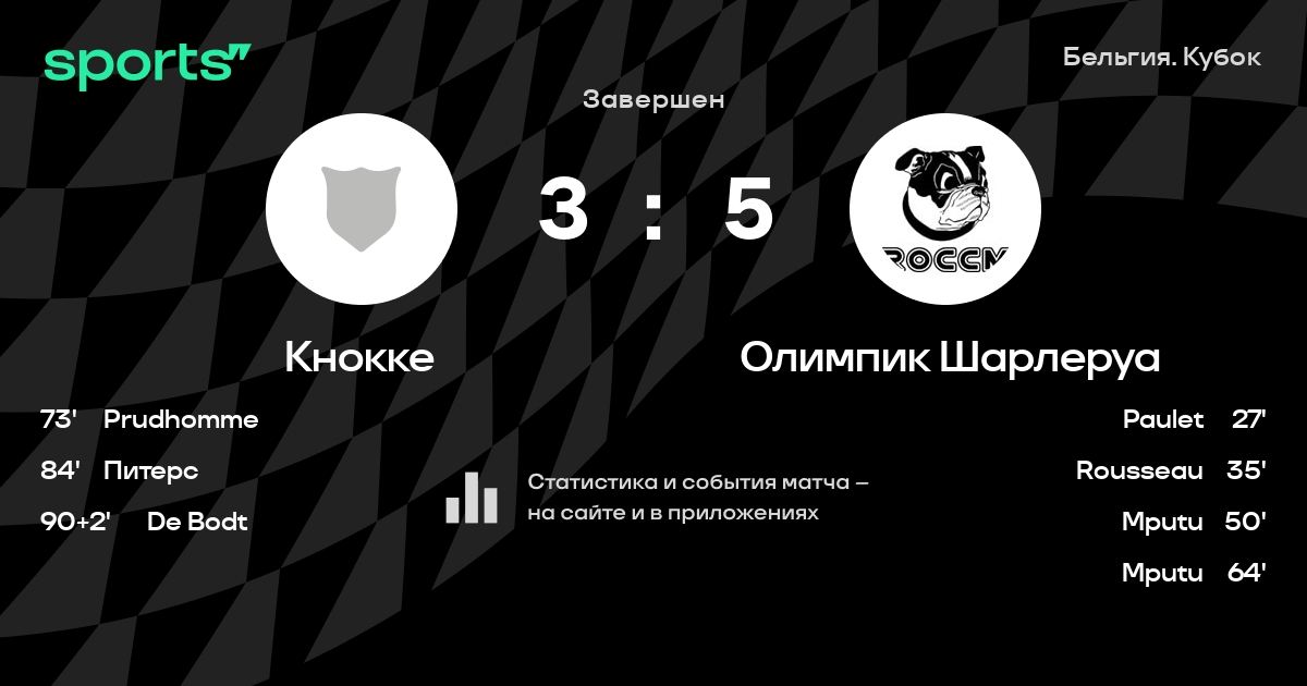 Схелфхаут - Gaye, Zeghdane, Камарден, Kouri, Ndedi Kegne - Терки, Paulet, Медфе - Léandro Rousseau, MputuЗапасные: Соссе, Spago, Гескьер, Lobe, Фербер, Kamara, Gassama
