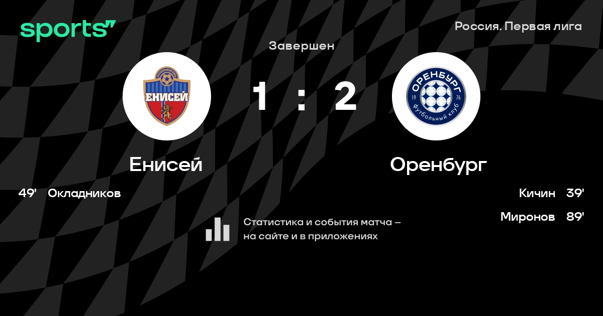 Енисей – Оренбург: Оренбург забивает в 4 последних матчах против этого соперника