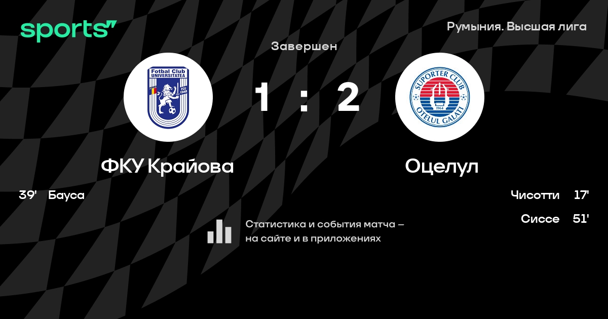Пап - Желев, Ghiocel, Сиссе, Adăscăliței - Жоау Ламейра, Живулич, Телеш - Бодиштяну, Чисотти, Фредерик МасиэлЗапасные: Стоян, Farcaș, Панаит, Rus, Гайтан, Жардан, Нягу, Tanasa, Cârjan, Мигел Силва, Малле, Рушевич