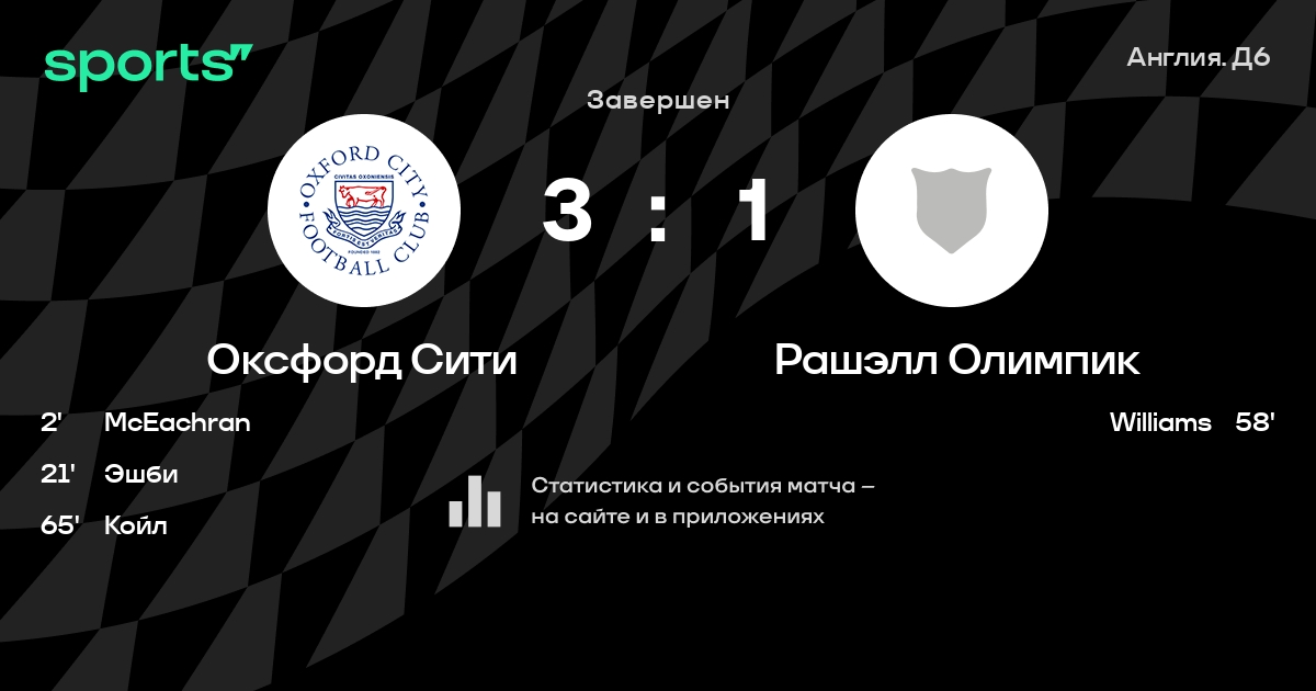 Оксфорд Сити - Рашэлл Олимпик: статистика матча