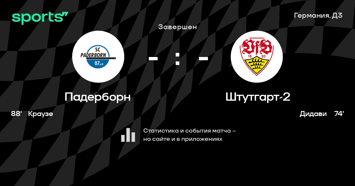 | 3 | Падерборн | 38 | 20 | 8 | 10 | 68 | 38 | +30 | 68 | ||