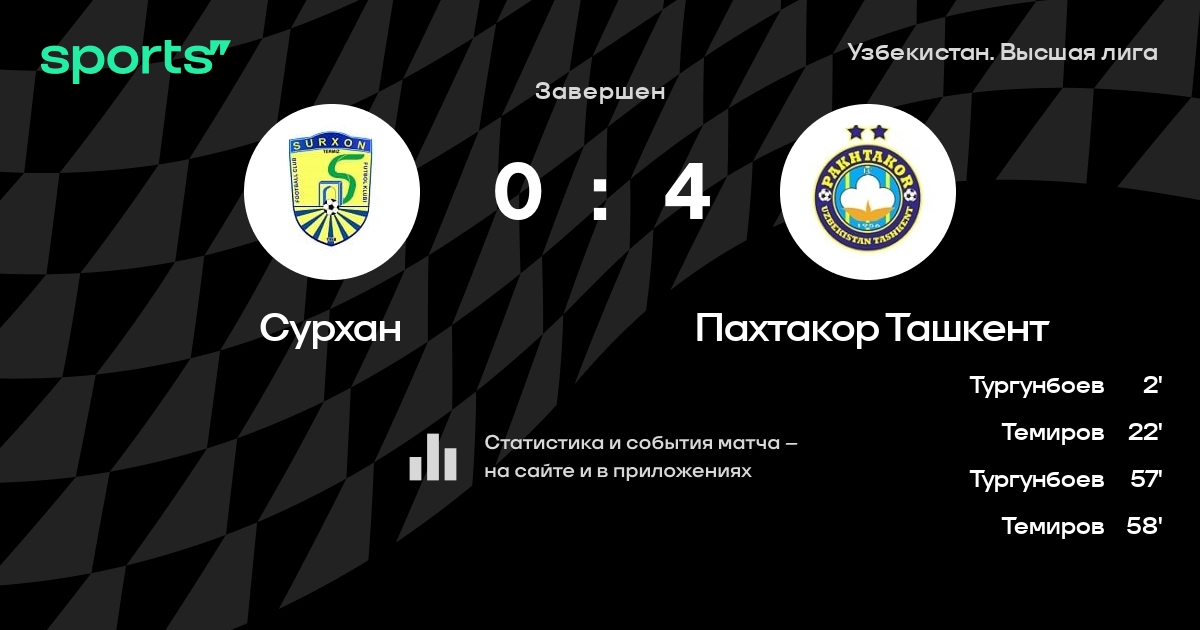 Сурхан – Пахтакор Ташкент: Пахтакор Ташкент забивает в 4 последних матчах против этого соперника