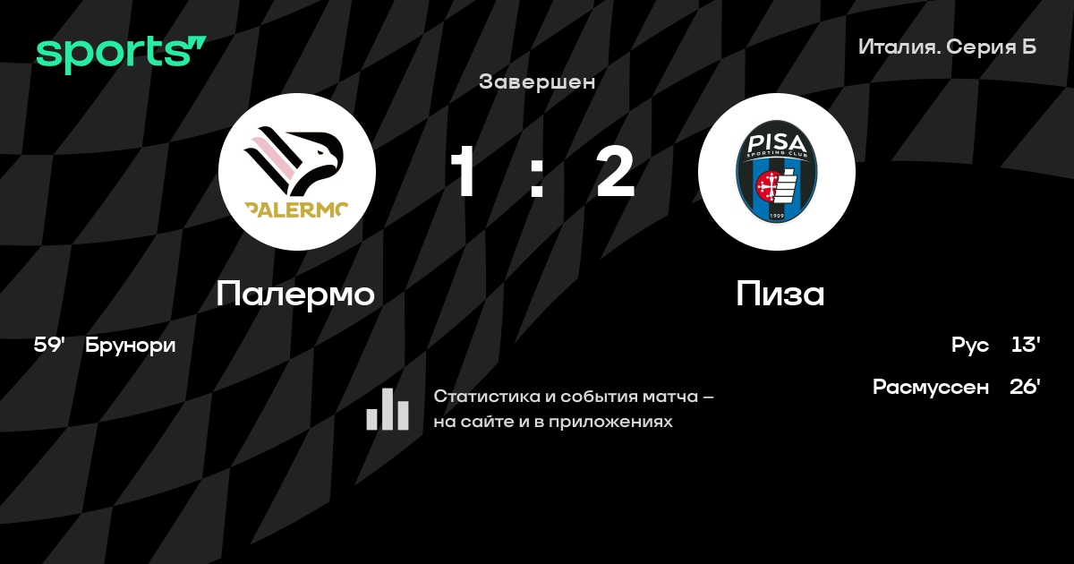 Результат прошлой игры в турнире «Серия B»: Реджана – Палермо 2:1. После 23 туров Палермо набирает 30 очков и занимает 8 место в турнире. Лучший бомбардир команды – Роберто Инсинье: он забил 5 в 22 матчах. В 7 последних матчах в турнире «Серия B» Палермо обязательно забивает. В последних 5 играх Палермо забивает 6 голов. В последних 5 играх Палермо пропускает 4 голов.