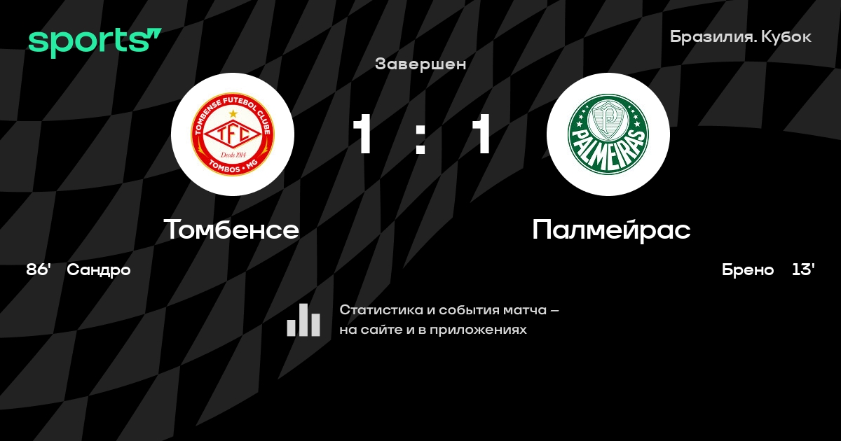 Результат прошлой игры в турнире «Кубок Бразилии»: Палмейрас – Томбенсе 4:2. В последних 5 играх Томбенсе забивает 10 голов. В последних 5 играх Томбенсе пропускает 9 голов.