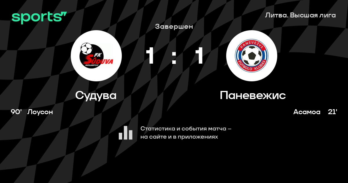 Результат прошлой игры в турнире «Высшая лига»: Судува – Гегельманн Литауэн 2:1. После 26 туров Судува набирает 45 очков и занимает 3 место в турнире. Лучший бомбардир команды – F. Tangiri: он забил 8 в 24 матчах. В 3 последних матчах в турнире «Высшая лига» Судува обязательно забивает. Судува пропускает в 6 последних матчах в турнире «Высшая лига». В последних 5 играх Судува забивает 7 голов. В последних 5 играх Судува пропускает 5 голов.