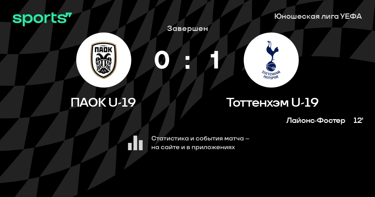 Трансляция ПАОК U-19 - Тоттенхэм U-19