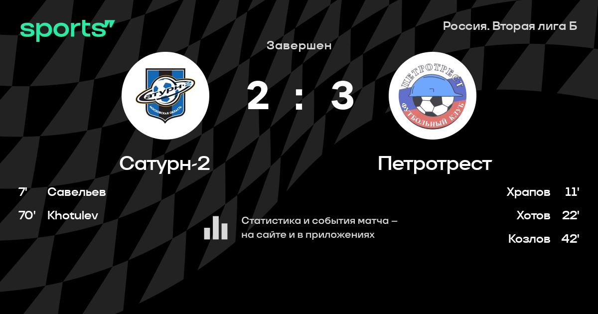 Второй дивизион. «Сатурн-2» уступил «Петротресту» и другие результаты