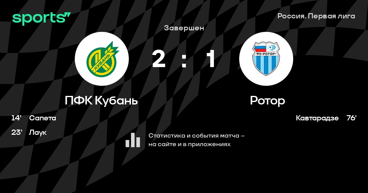 ПФК Кубань – Ротор: коэффициенты