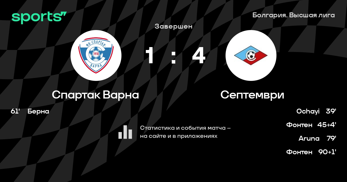 Результат прошлой игры в турнире «Высшая лига»: Добруджа 1919 – Спартак Варна 2:0. После 14 туров Спартак Варна набирает 16 очков и занимает 9 место в турнире. Лучший бомбардир команды – D. Ivanov: он забил 3 в 7 матчах. Спартак Варна пропускает в 6 последних матчах в турнире «Высшая лига». В последних 5 играх Спартак Варна забивает 8 голов. В последних 5 играх Спартак Варна пропускает 7 голов.