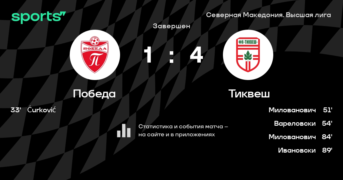 Победа – Тиквеш: Тиквеш забивает в 3 последних матчах против этого соперника