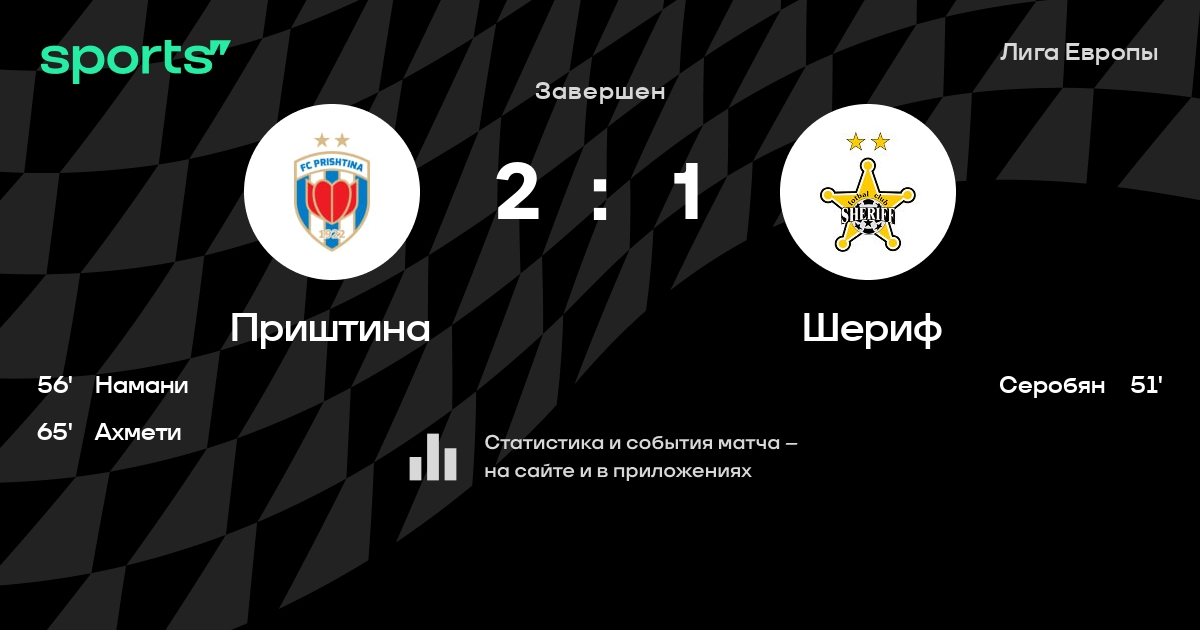 Результат прошлой игры в турнире «Лига Европы»: Шериф – Приштина 4:0. В последних 5 играх Приштина забивает 8 голов. В последних 5 играх Приштина пропускает 10 голов.