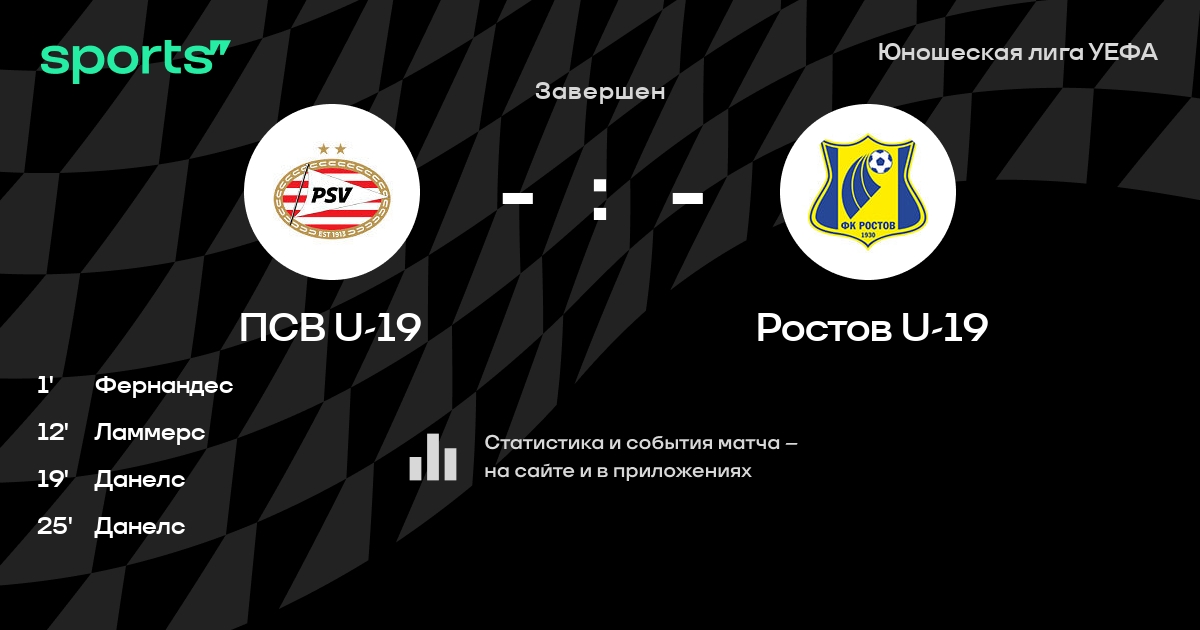 ПСВ U-19 - Ростов U-19: положение в турнире