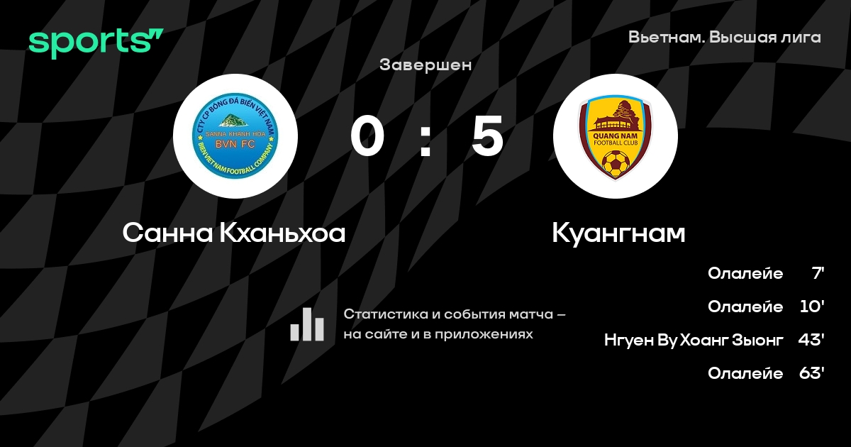 Санна Кханьхоа – Куангнам: Санна Кханьхоа не проигрывает в 7 из 9 последних матчей против этого соперника