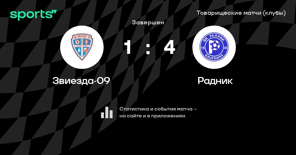 Звиезда-09 – Радник: Звиезда-09 забивает в 5 последних матчах против этого соперника