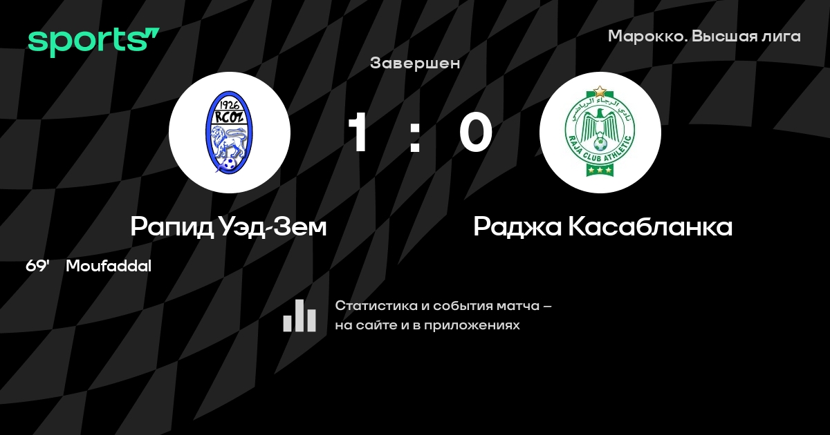 Рапид Уэд-Зем – Раджа Касабланка: Раджа Касабланка не проигрывает в 8 последних матчах против этого соперника