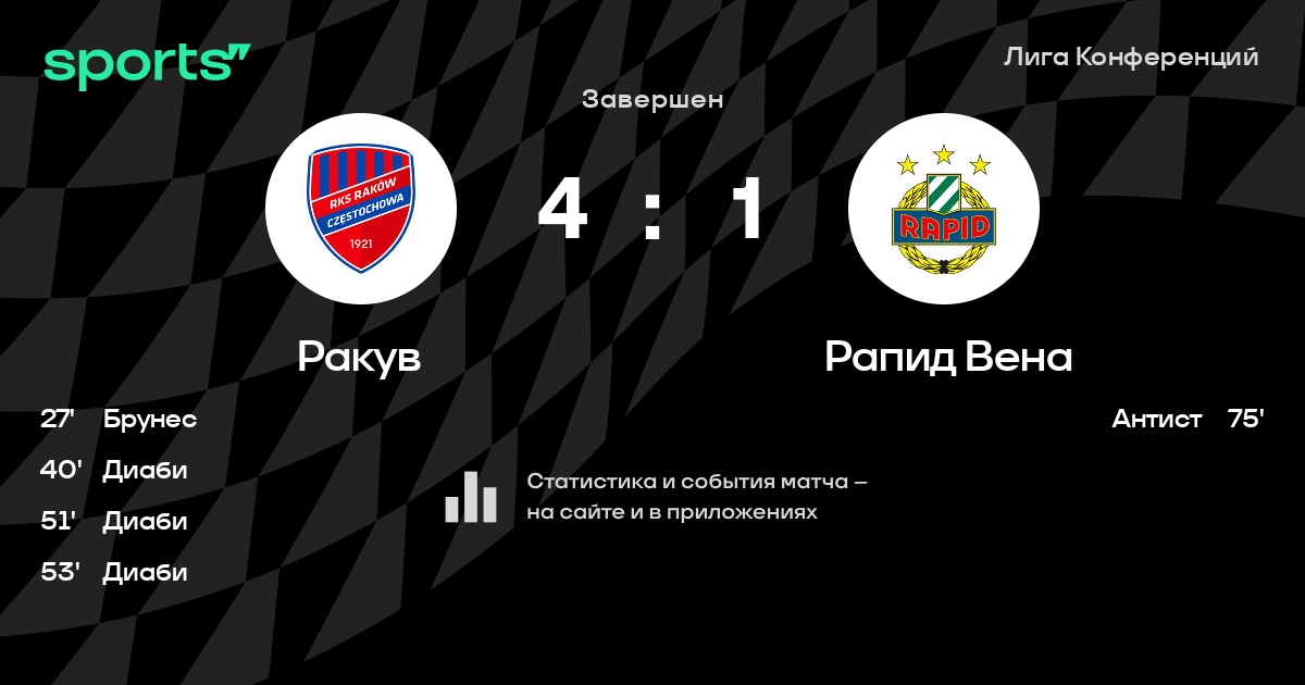 ЛК : шансы Ракув и Рапид Вены на победу в матче 5-го тура Лиги Конференций