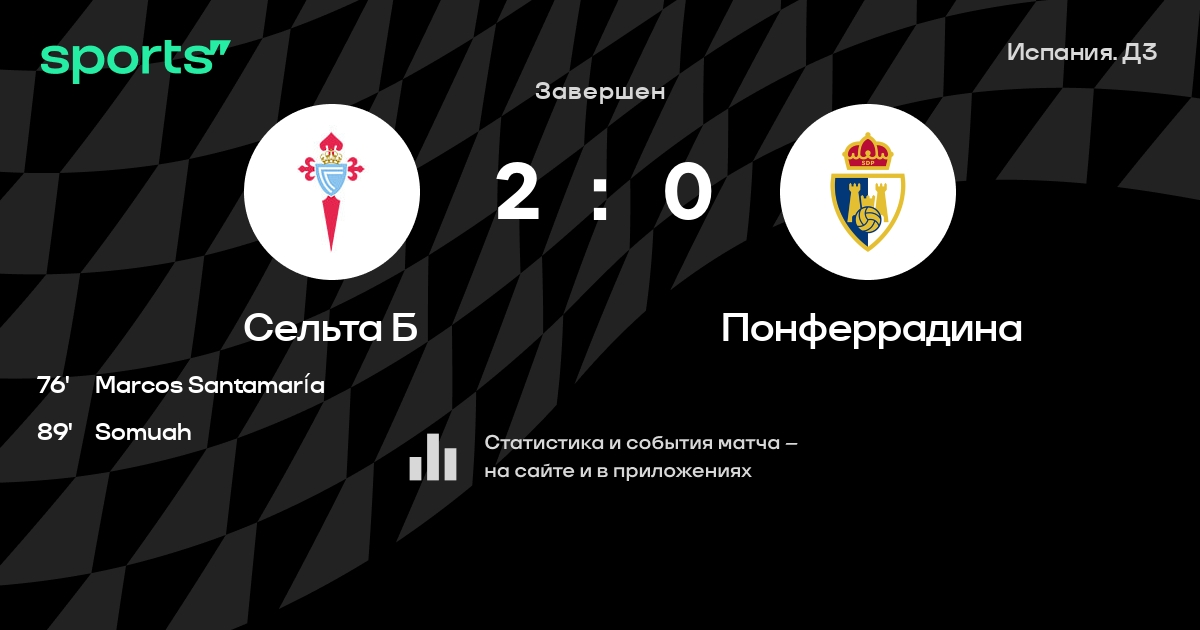 Результат прошлой игры в турнире «Первый дивизион RFEF»: Тенерифе – Сельта Б 4:0. После 12 туров Сельта Б набирает 21 очков и занимает 4 место в турнире. Лучший бомбардир команды – Уго Гонсалес: он забил 6 в 11 матчах. Сельта Б пропускает в 5 последних матчах в турнире «Первый дивизион RFEF». В последних 5 играх Сельта Б забивает 7 голов. В последних 5 играх Сельта Б пропускает 11 голов.