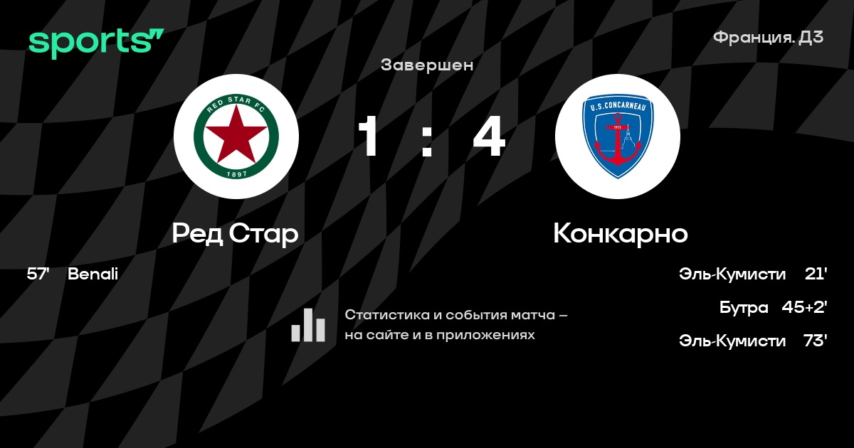 В последних 5 играх Конкарно забивает в среднем 0.80 гола за игру