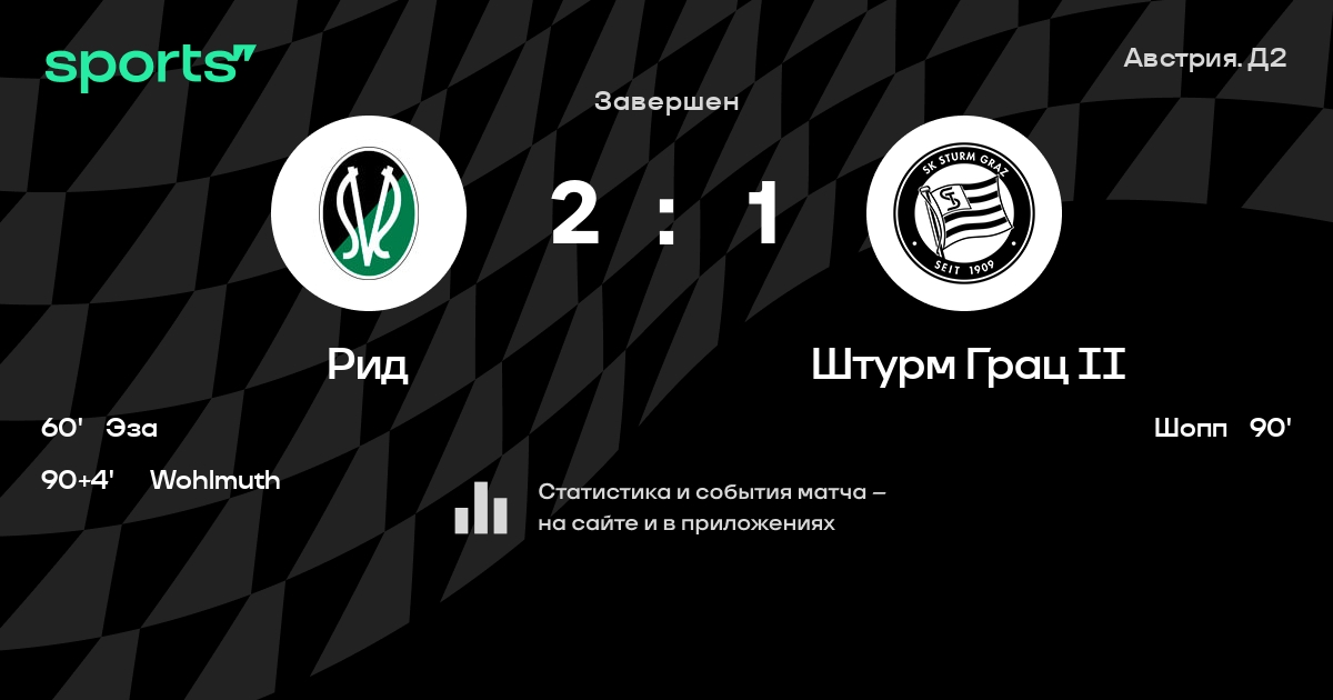 Рид – Штурм Грац II: Рид не пропускает в 4 последних матчах против этого соперника