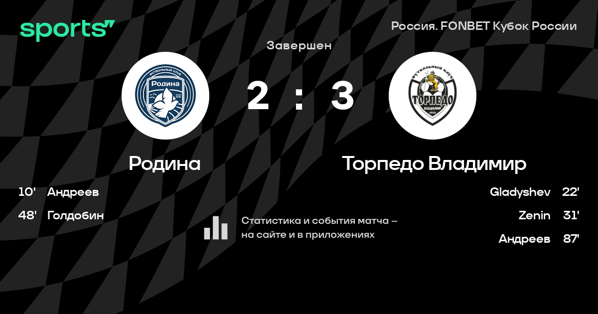 Родина – Торпедо Владимир: Родина забивает в 4 последних матчах против этого соперника