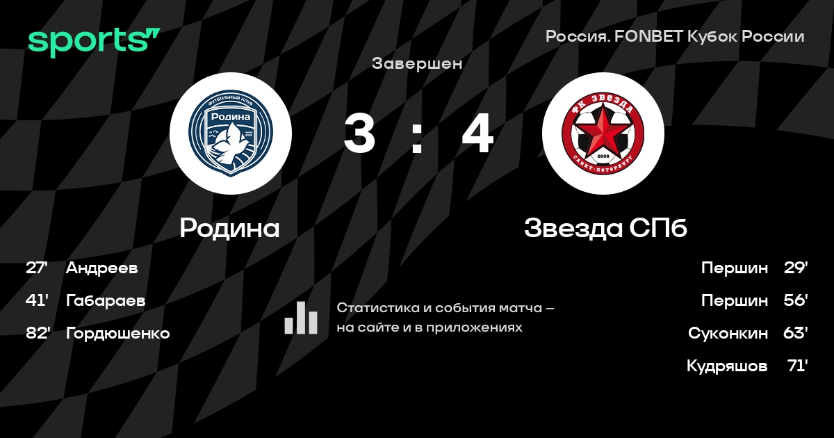 Родина – Звезда СПб: Звезда СПб забивает в 3 последних матчах против этого соперника