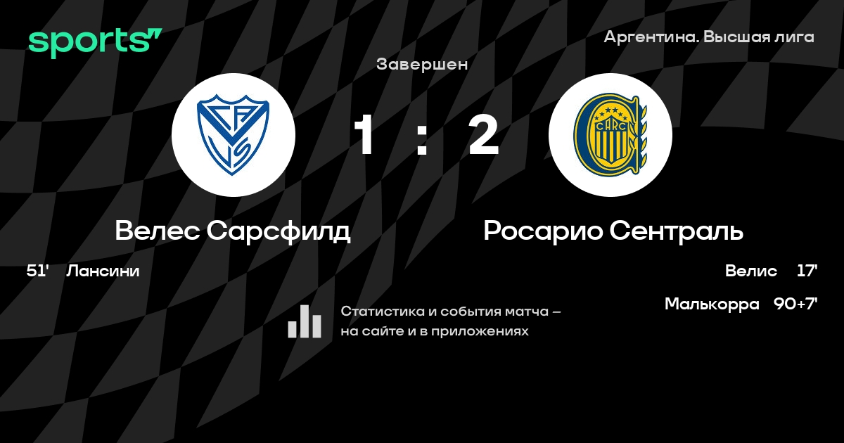 Велес Сарсфилд – Росарио Сентраль: Велес Сарсфилд не проигрывает в 5 последних матчах против этого соперника дома