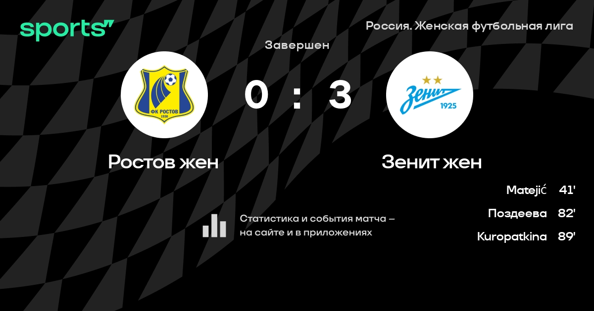 Ростов жен – Зенит жен: Зенит жен побеждает в 4 последних очных матчах