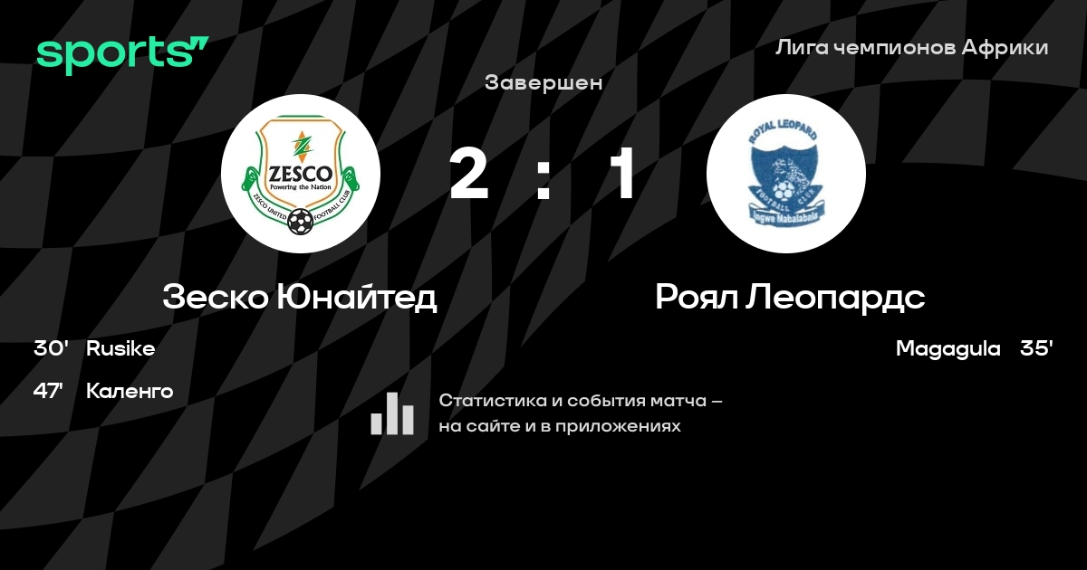 Зеско Юнайтед - Роял Леопардс: статистика матча