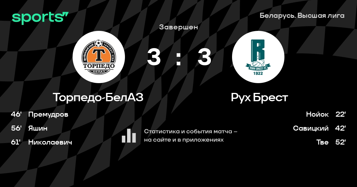 Рух Брест не проигрывает в 16 из 18 последних матчей