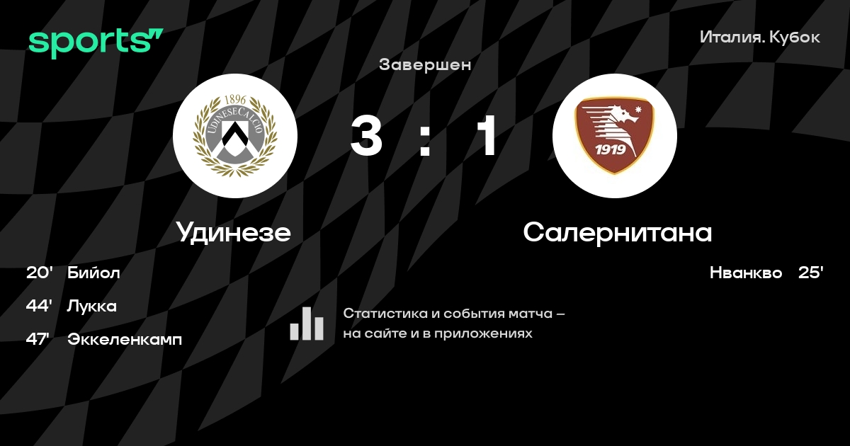 Удинезе – Салернитана: коэффициенты